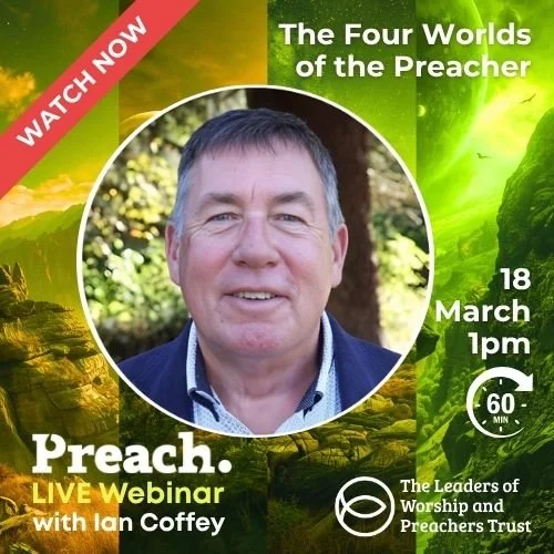 Catch up with our latest Webinar with Ian Coffey as he explores The Four Worlds of the Preacher, drawing on the influential homiletical framework developed by Haddon Robinson. Robinson contended that effective preaching emerges from a preacher’s capacity to inhabit four distinct yet interrelated worlds simultaneously. Click here to watch.